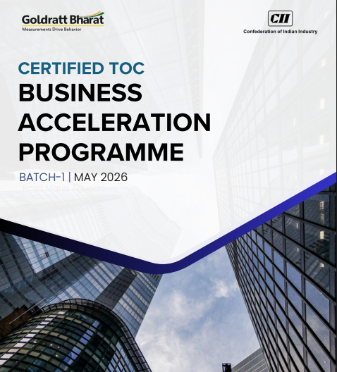 To this end, Confederation of Indian Industry (CII) and Goldratt Bharat will organize the inaugural batch of the CERTIFIED TOC BUSINESS ACCELERATION PROGRAMME in May 2026. The course will introduce participants to the core concepts of TOC and its practical applications in business operations and supply chain management. Through concepts, case studies, and interactive discussions, participants will learn how to identify system constraints, improve operational flow, reduce inventory and lead times, and make better decisions using TOC metrics such as Throughput, Inventory, and Operating Expense.